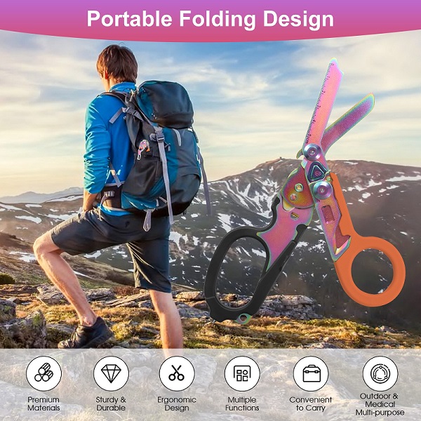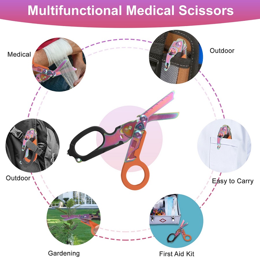 Kéo cắt y tế: Kéo chính, hiệu suất cao cắt xuyên qua các vật liệu cứng như dây an toàn, dây thừng dày và quần áo với độ chính xác cao.