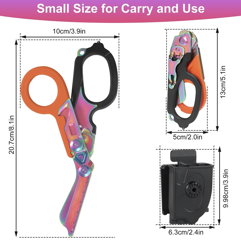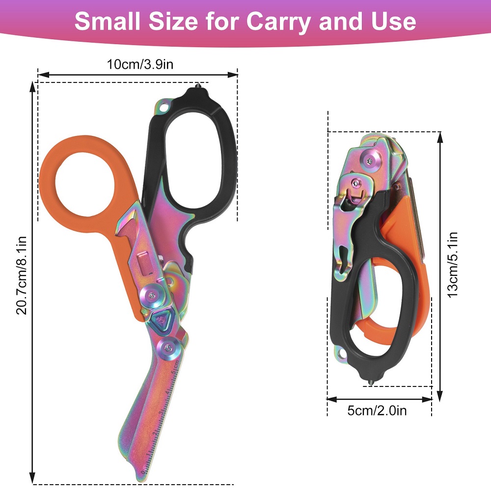 10*20.7cm/8.1*3.9 inchDụng cụ cứu hộ đa năng 6 trong 1:Kéo y tế đa năng