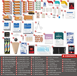 Hoàn chỉnh & ngăn nắp: Chứa các vật tư y tế thiết yếu được sắp xếp một cách có hệ thống trong hộp đựng di động, bền bỉ với các ngăn rõ ràng để lấy nhanh chóng.